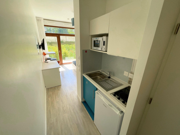 Les logements étudiants à Ivry sont conçus pour offrir un espace fonctionnel et confortable. Chaque studio est entièrement meublé, permettant aux étudiants de s’installer rapidement et de se sentir chez eux. Le lit assure des nuits reposantes, tandis que le bureau et la chaise offrent un espace de travail optimal. Le placard de rangement permet d’organiser facilement ses affaires, et la kitchenette équipée avec frigo, plaques de cuisson, micro-ondes et vaisselle facilite la préparation des repas au quotidien. La salle d’eau individuelle avec WC garantit confort et intimité.