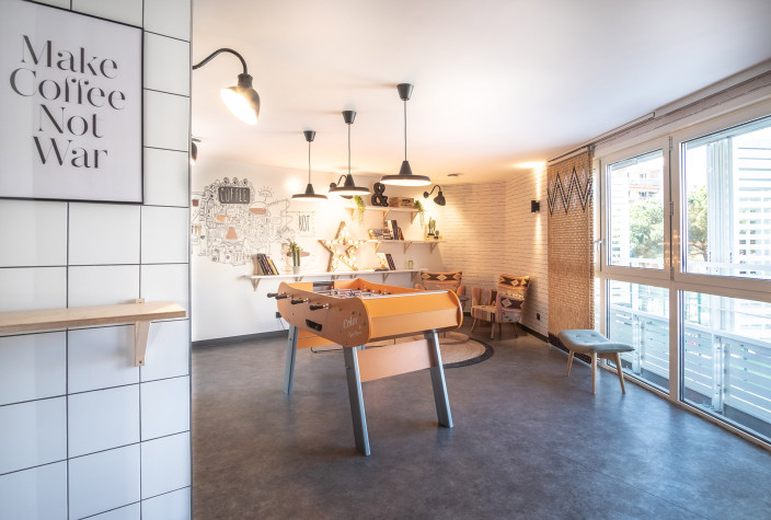 Bien au-delà du schéma classique de la résidence pour étudiants, Student Factory innove et se démarque en proposant des surfaces communes généreuses dédiées à la réflexion et au partage de connaissances, des équipements innovants, une offre complète de services et une décoration de style loft industriel.