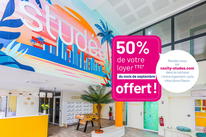 Conditions d’éligibilité : Souscription à un contrat de location classique ou multiple et ayant une date d’effet avant le 07/07/2026 inclus. Le client doit renvoyer un coupon pour bénéficier de l’offre. Il doit être envoyé par mail avec un accusé de réception avant le 19/07/2026 inclus à l’adresse suivante: [email protected] Objet du mail : COUPON OFFRE SEPTEMBRE IMMOJEUNE Le coupon doit être envoyé séparément du contrat de location par mail par le client sans quoi le client ne sera pas éligible à l’offre. AUCUN COUPON NE DOIT ETRE REMIS AUX RESPONSABLES DE RESIDENCE. Points de Vigilance : En cas d’échec à l’examen, le client doit prévenir le Responsable de résidence par téléphone ou par mail et présenter un justificatif dès la diffusion des résultats pour un remboursement (avec une tolérance jusqu’au 10 juillet 2026 inclus). Sans retour de sa part avant le 10 juillet 2026 inclus, nous considérerons que le client a eu son examen. Le contrat de location sera donc actif et nous procéderons à l’enregistrement comptable de son dossier. Si le locataire quitte son logement avant 6 mois de location, le loyer du mois de septembre, offert dans le cadre de la présente offre, sera refacturé par Nexity Studéa lors du départ du locataire. Être nouveau client : c’est à dire toute personne n’ayant jamais été locataire auparavant au sein des résidences Nexity Studéa ou toute personne dont le dernier contrat de location Nexity Studea a pris fin il y a plus d’un an avant la signature du nouveau contrat. Offre non cumulable avec toute autre offre Nexity Studéa, à l’exception de l’offre de parrainage et des offres commerciales ponctuelles.